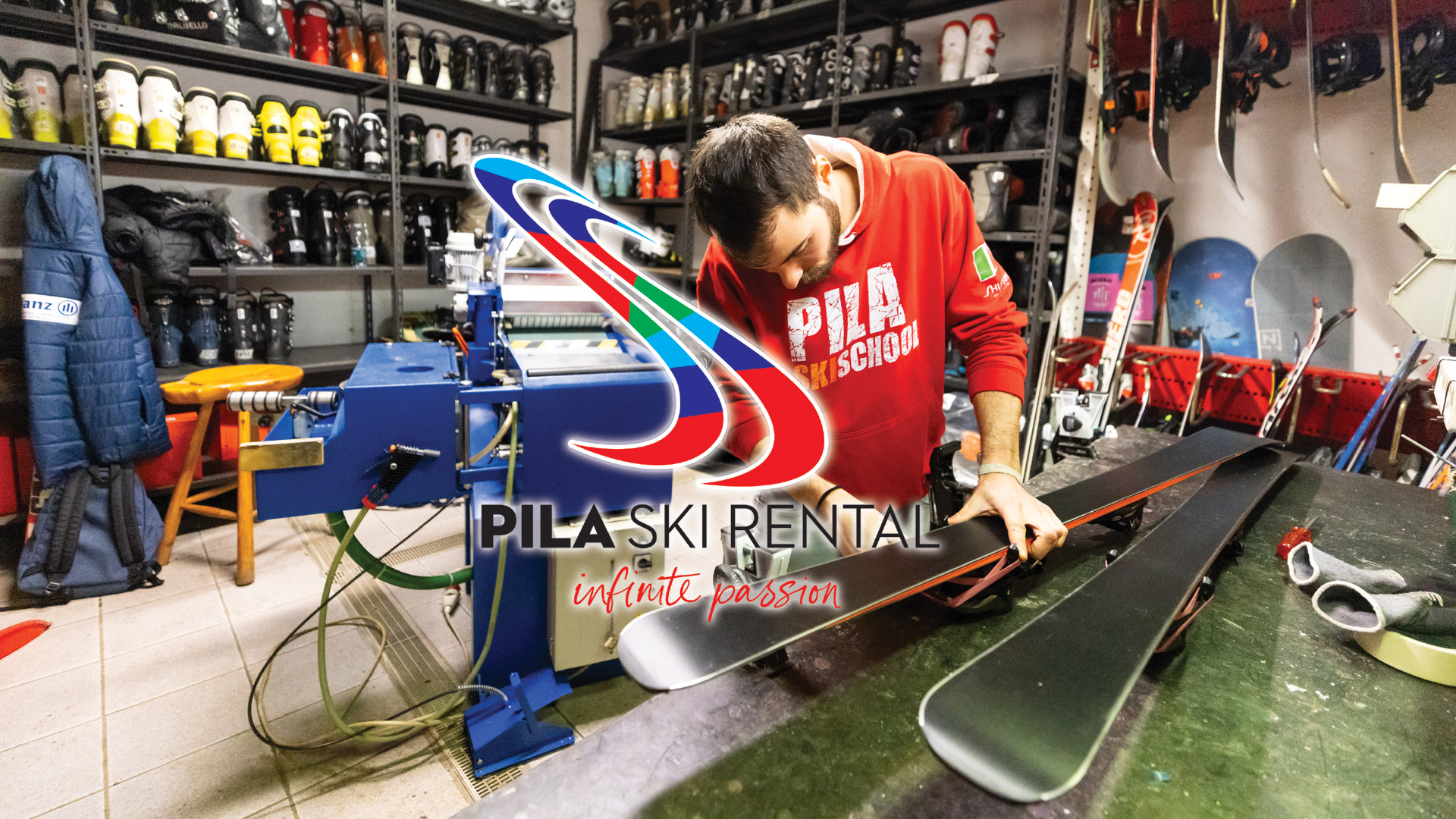 A disposizione della clientela proponiamo anche un efficiente laboratorio di riparazione sci e snowboard in grado di effettuare riparazioni e manutenzioni di qualità .